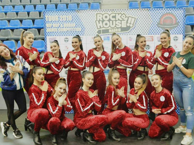 Traje de flamenca : falda y blusa con volantes elaborados con bies de raso blanco